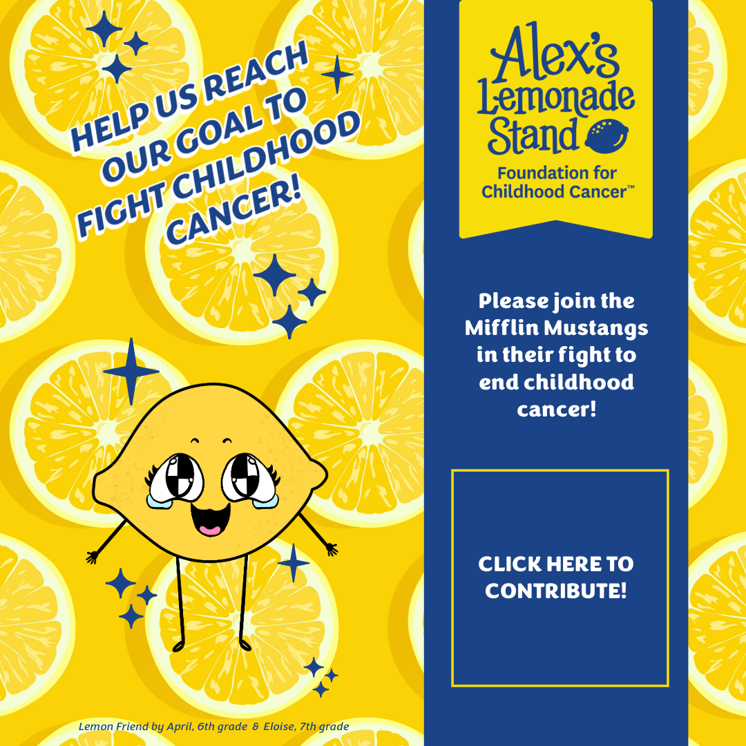 Join the Mifflin Mustangs in their fight to end childhood cancer! Pop in to purchase a snack, send your student in with some pocket money, or click HERE to contribute!