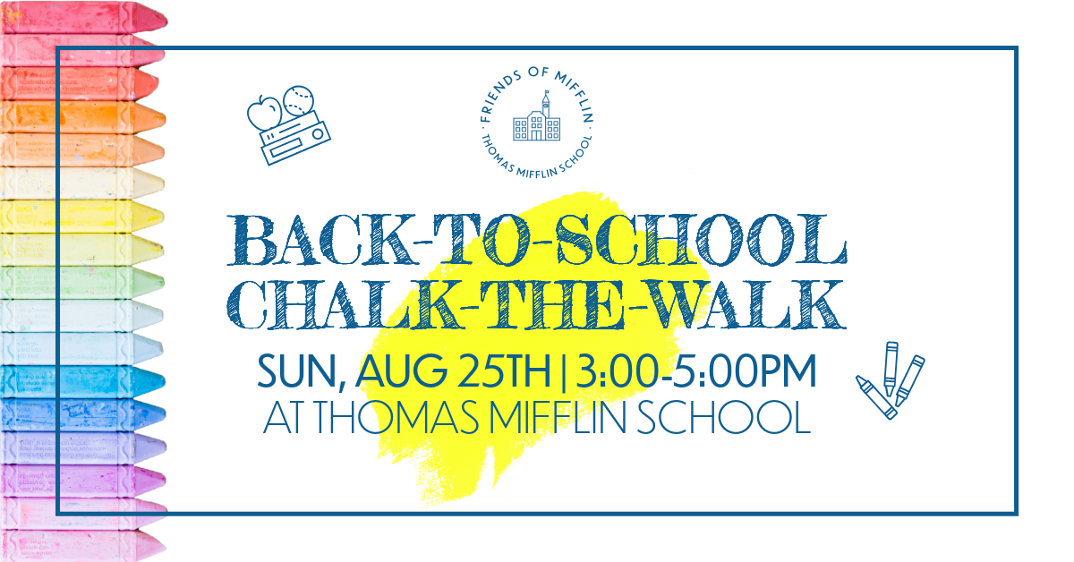 Join us for our annual Back-to-School Chalk-the-Walk event! Let’s boost our students and teachers and get them pumped for an amazing 2024 - 2025 school year! Let’s chalk some positive messages and meet up with classmates and parents!